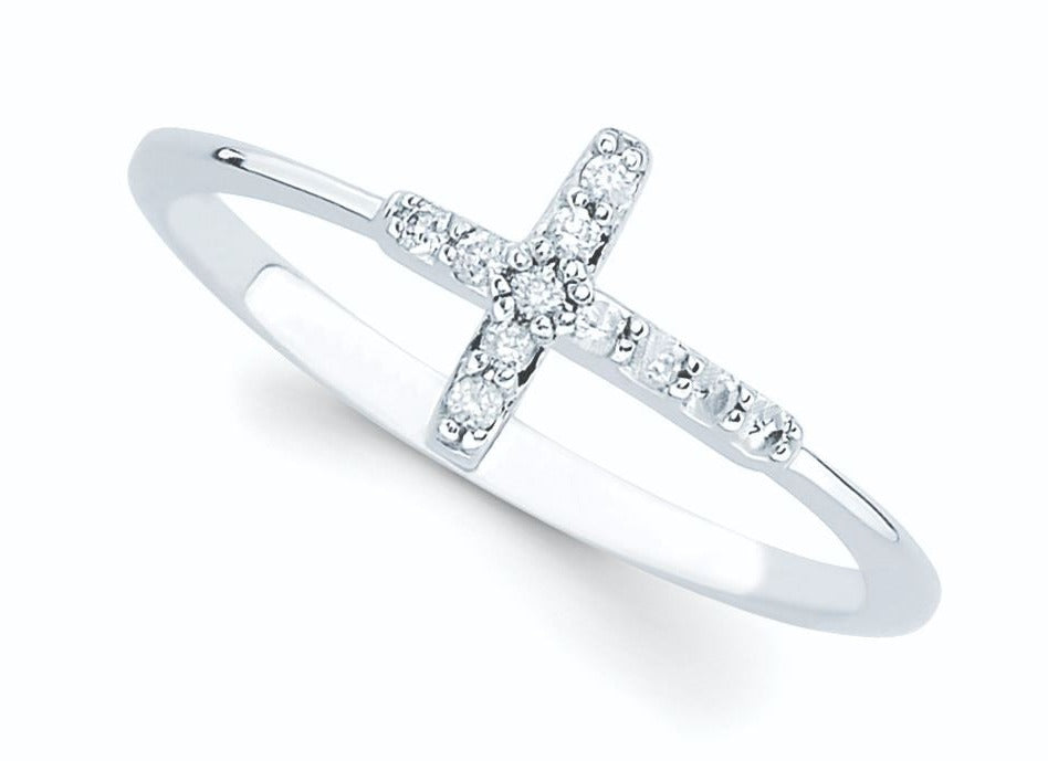 Diamond 1/10 of a Carat Total Weight, Cross Fashion Ring In 14K Gold